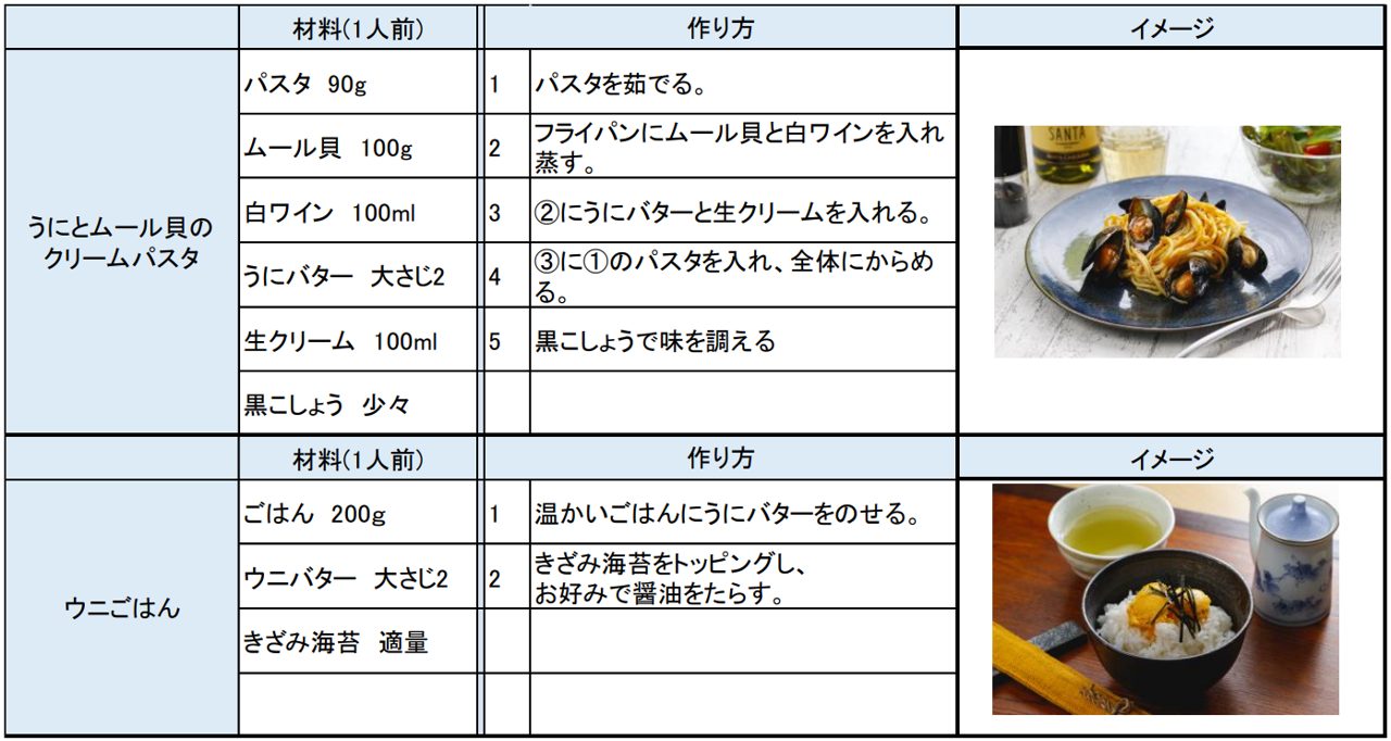 本商品には、バターを約35%配合しており、温かい料理に乗せていただくと、バターが溶け出して深いコクが広がります。また、バターはホイップしてやわらかくすることで、スプーンですくいやすく、料理に和えやすくなるように工夫をいたしました。うに・バターに加え、隠し味に魚醤パウダーが入っており、磯の香りや旨味をより一層引き立たせています。