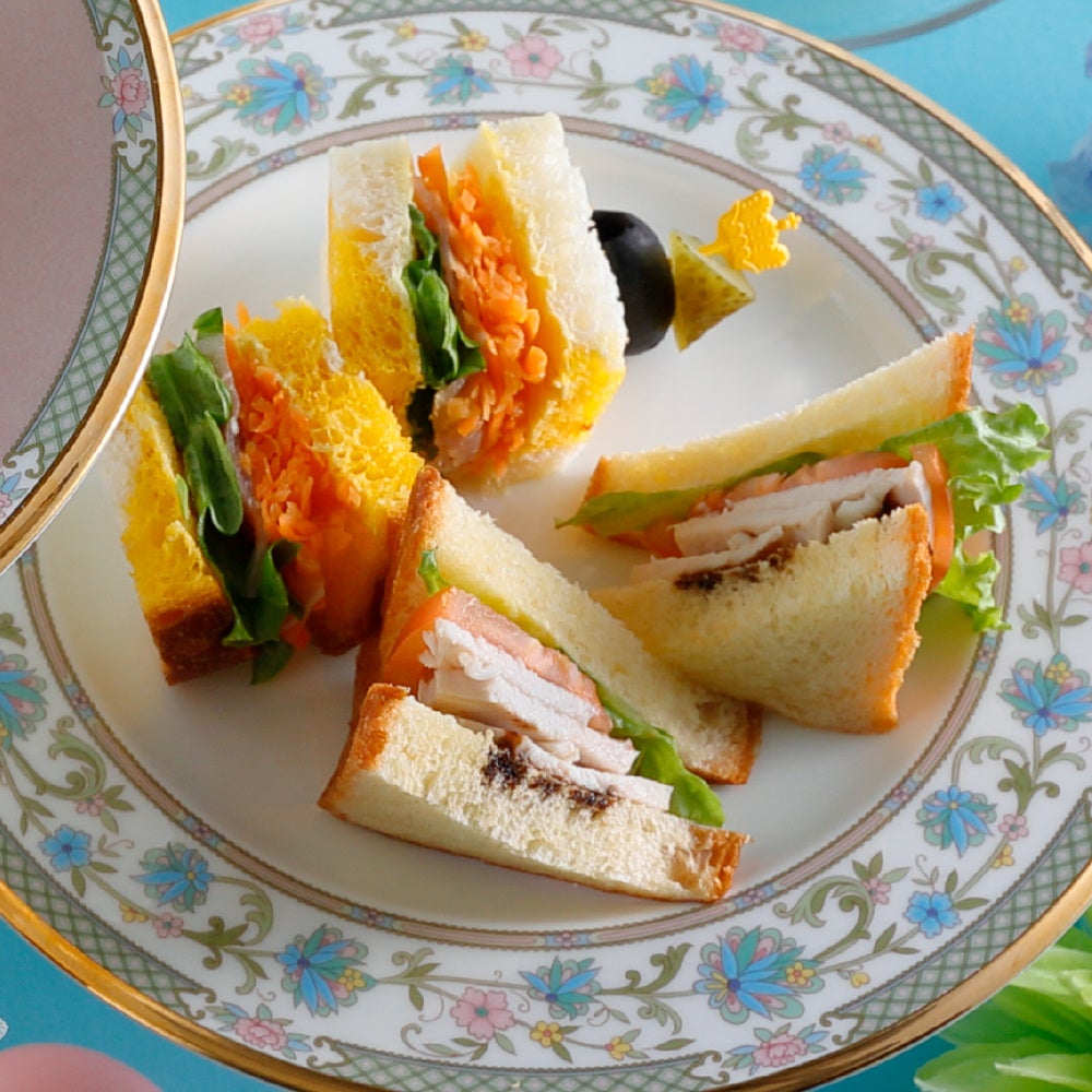 イースターバニーをかたどったウサギのチョコムース、キャロット生地のサンドウィッチや華やかにお花を添えたパンナコッタなど、カラフルで楽しいセットです。春のひとときをホテルラウンジでゆっくりお過ごしください。