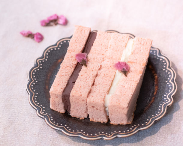 その他にも、昨今の新型コロナウイルス感染拡大を考慮し、屋外やおうち時間でも楽しめる「ふわ生さくらショコラ」も販売いたします。ふわふわな食感の桜風味の生地に、ホワイトチョコガナッシュとミルクチョコに桜の味を閉じ込めた桜ミルクチョコガナッシュをそれぞれサンドしています。1日目は生地がふわふわな食感、2日目はしっとり食感と1つのメニューで2度お楽しみいただけるのが特徴です。