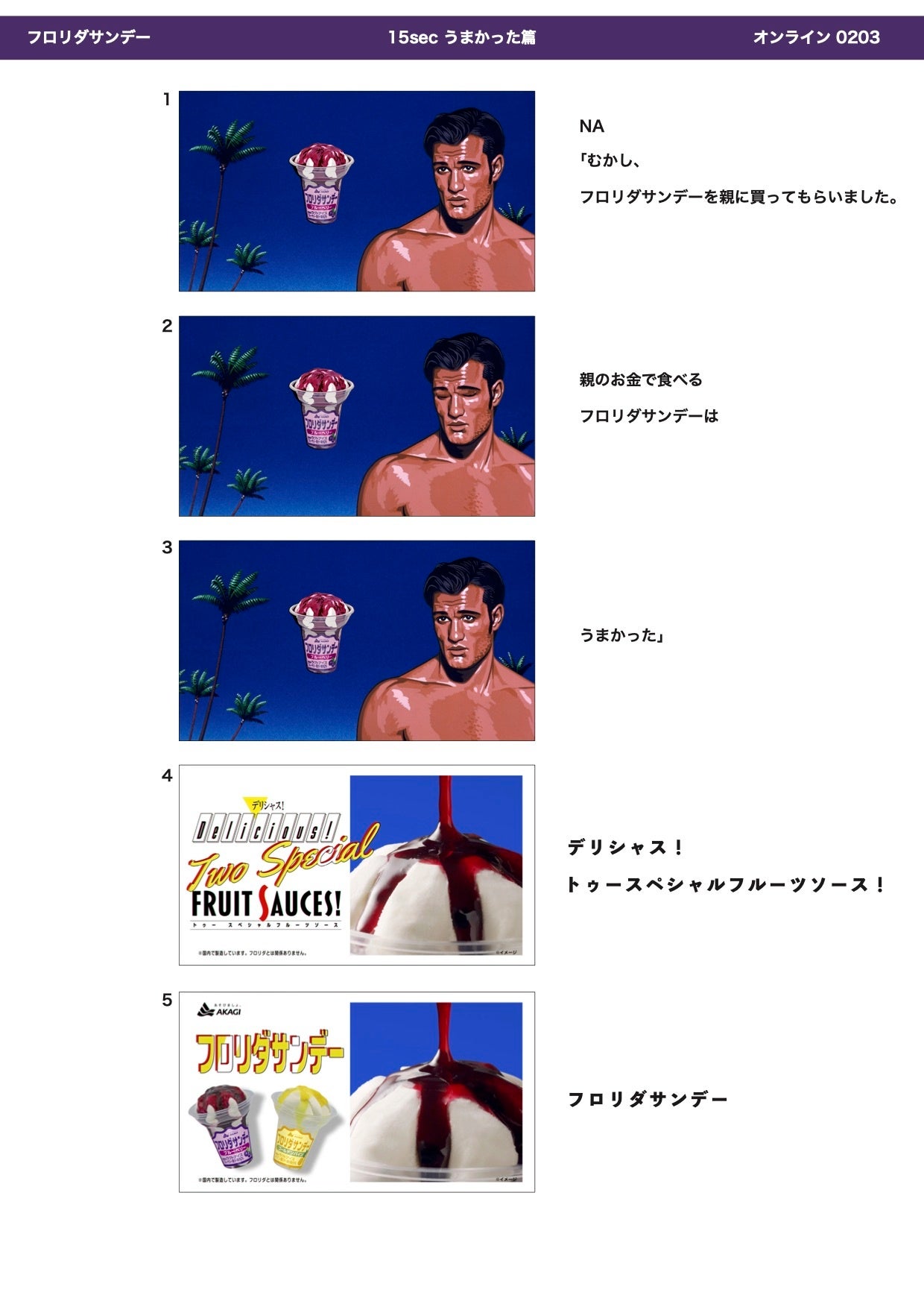■新CMストーリーボード 【フロリダサンデー「うまかった篇」 15秒】
