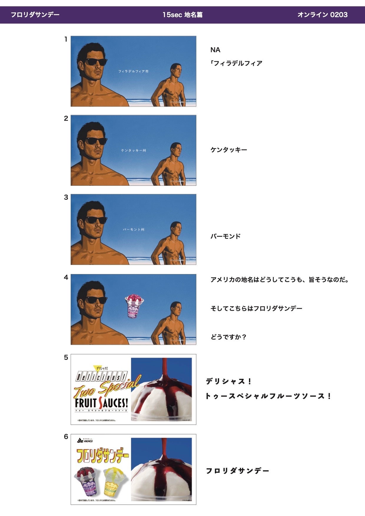■新CMストーリーボード 【フロリダサンデー「地名篇」 15秒】