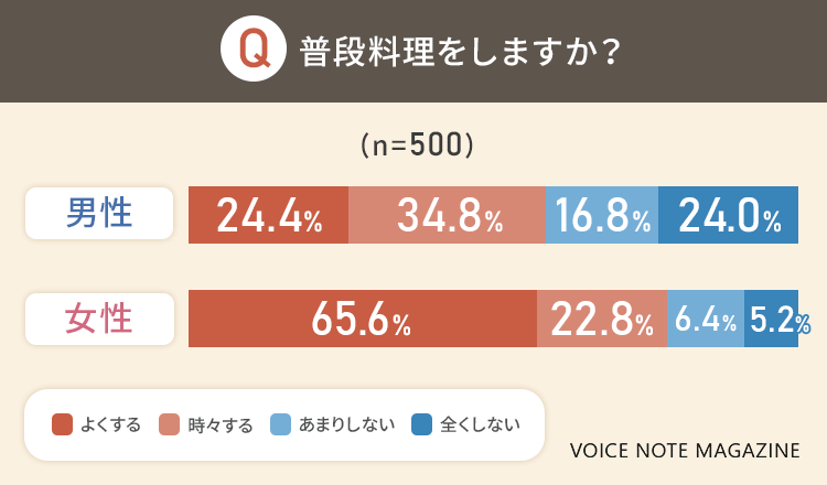 まずは、普段料理をするかについて聞き、男女別に集計しました。
