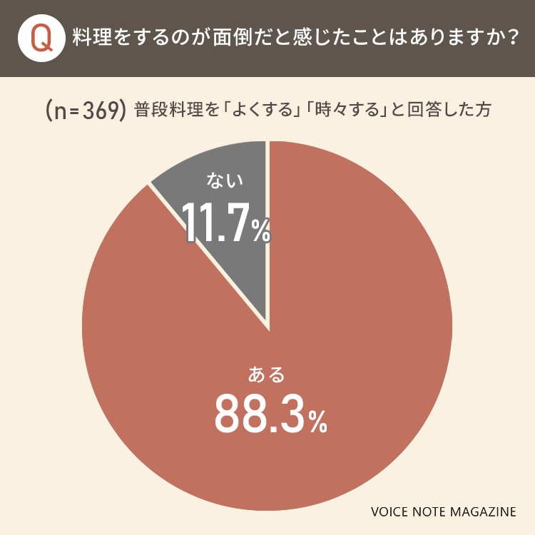 88.3%と約9割の方は、料理が面倒だと感じたことが「ある」ようです。