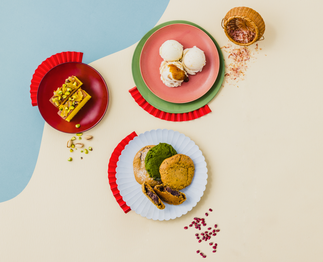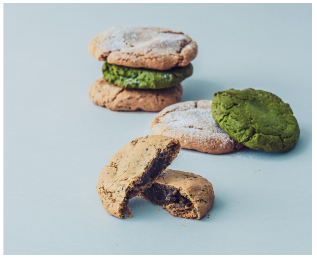 「ovgo B.A.K.E.R」の“ヴィーガンおやつ”のコンセプトのもと、明治10年創業の老舗日本橋日月堂が甜菜糖を使ったヴィーガンあんこづくりに初挑戦。ヴィーガンあんこを包んだ『抹茶』『ごま』『プレーン』3種類のアメリカンクッキーは、コーヒーにも日本茶にも合わせられる、和と洋のアンサンブルを奏でたおやつに仕上がりました。