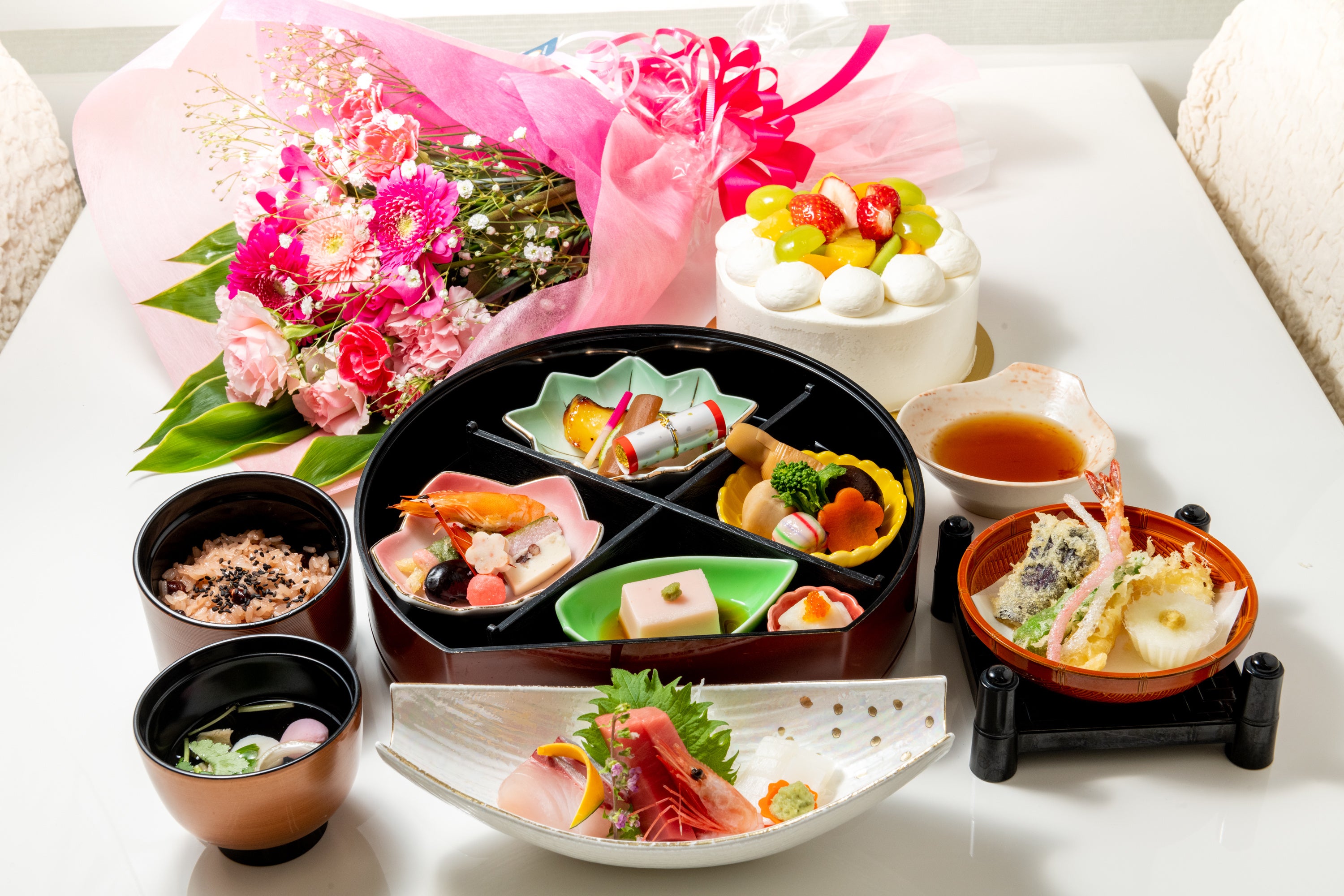 創業80年、冠婚葬祭仕出し専門店の魚伊三株式会社(本社:東京都練馬区、代表:小美濃 友一)は、卒業や入学、就職など、ハレの日にご自宅でお祝いする方に向けた会席料理と花とケーキを組み合わせたお祝いセットのお届けサービスを3月4日より開始しました。