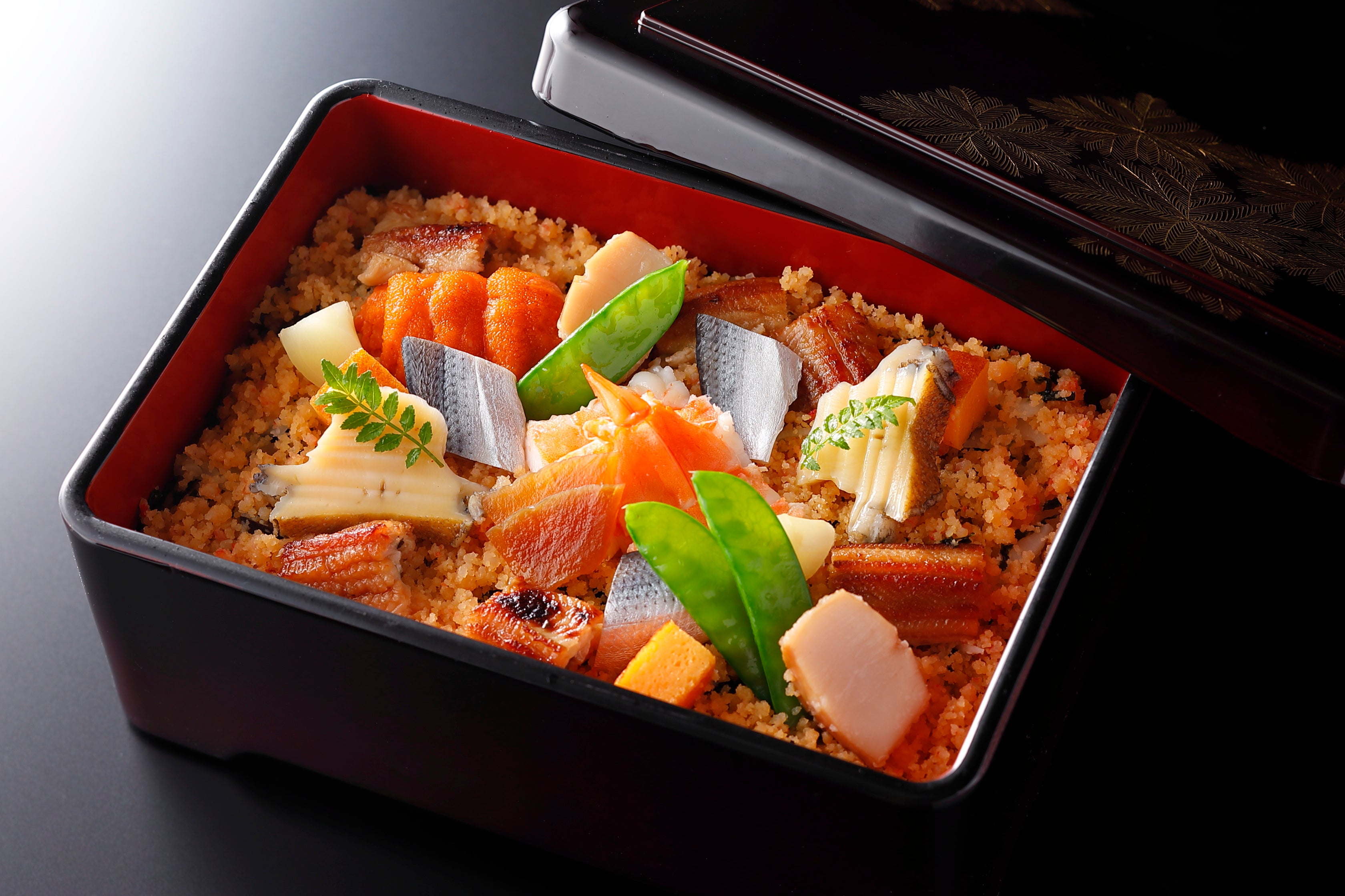 - 鮑や雲丹など厳選食材をふんだんに使用した『新江戸前ばらちらし重』