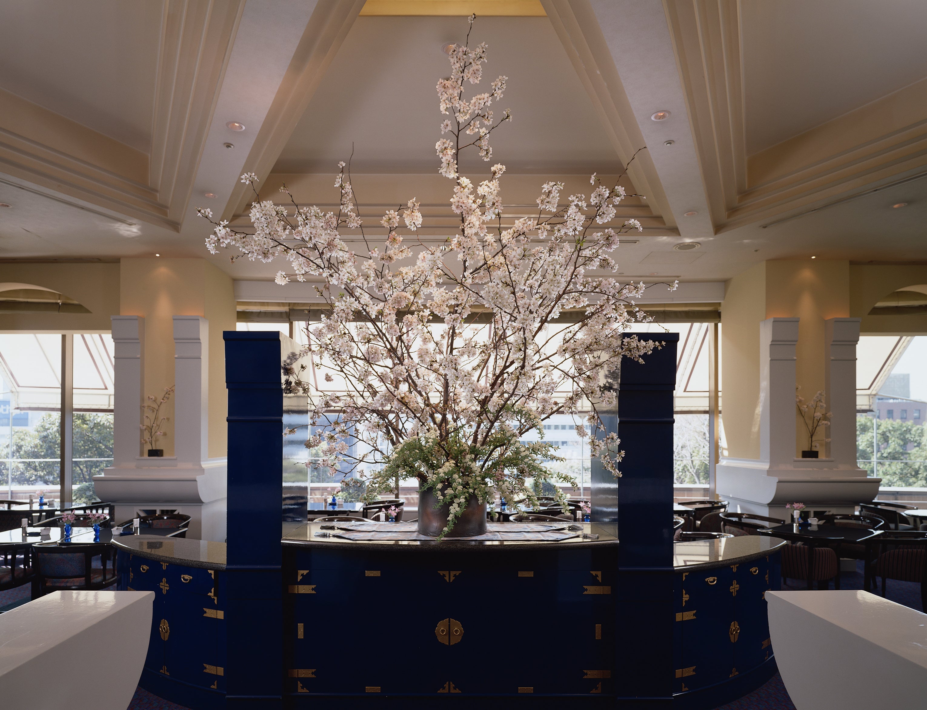 3月8日(火)よりレストラン内の中心部分には大きな桜の木が展示されます。雨天時でもゆったりくつろいで花見が楽しめます。また館内直営レストランでも、桜の装飾を楽しむことができます。