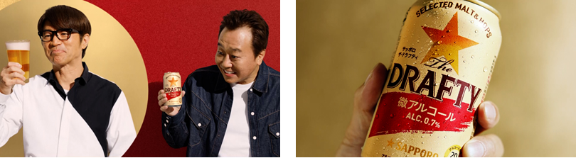 「サッポロ The DRAFTY」は、ビール好き(注1)のお客様の新しい選択肢として提案するアルコール度数0.7%の微アルコールビールテイスト飲料です。