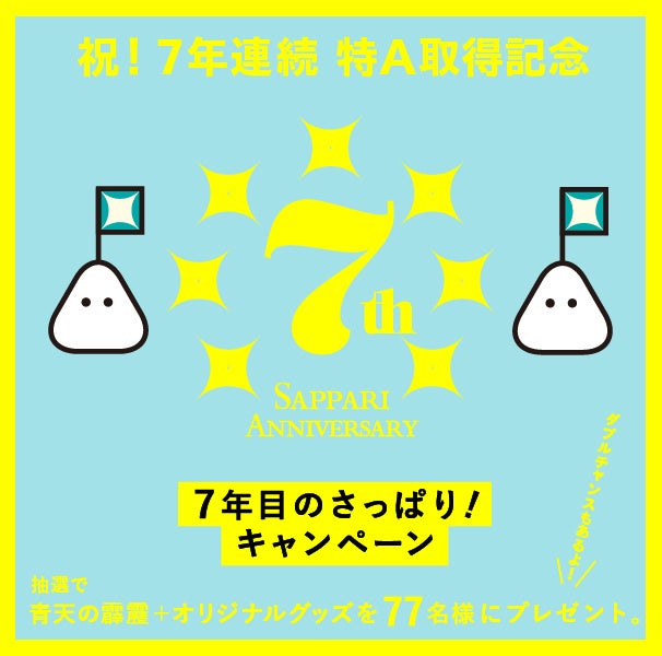 青森県は、青森お米 青天の霹靂が日本穀物検定協会による食味ランキングで最高評価「特A」を7年連続取得したことを記念し、青天の霹靂とオリジナルグッズが当たる「7年目のさっぱり!キャンペーン」を実施します。