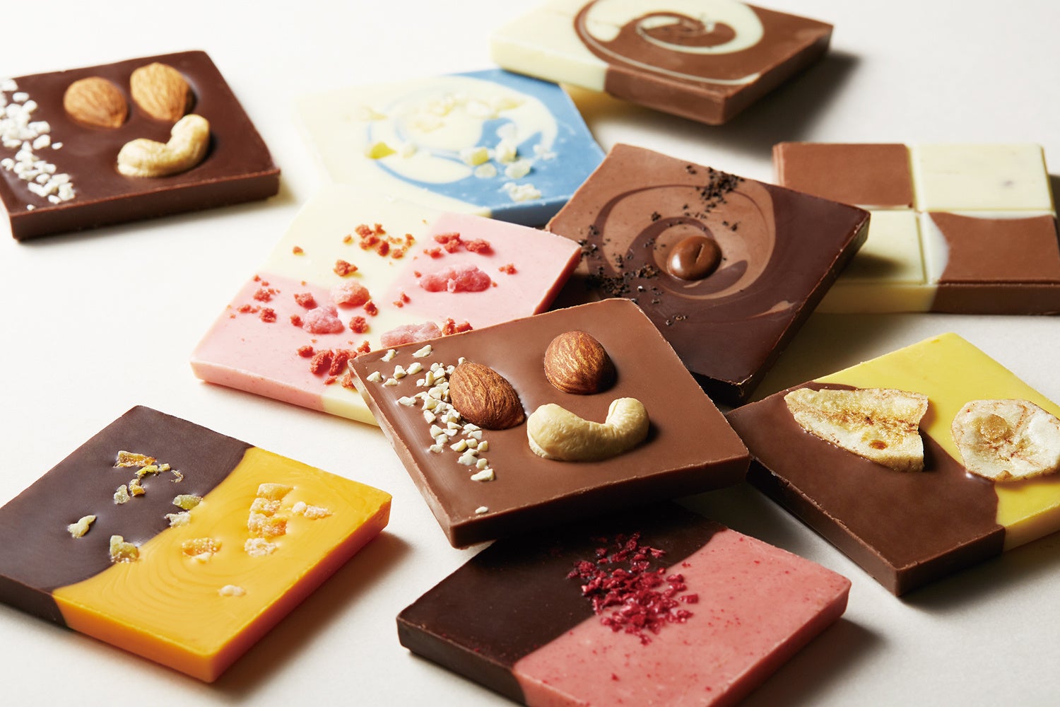 ベースのショコラにフルーツやナッツをトッピングした板チョコレート「タブレット」。