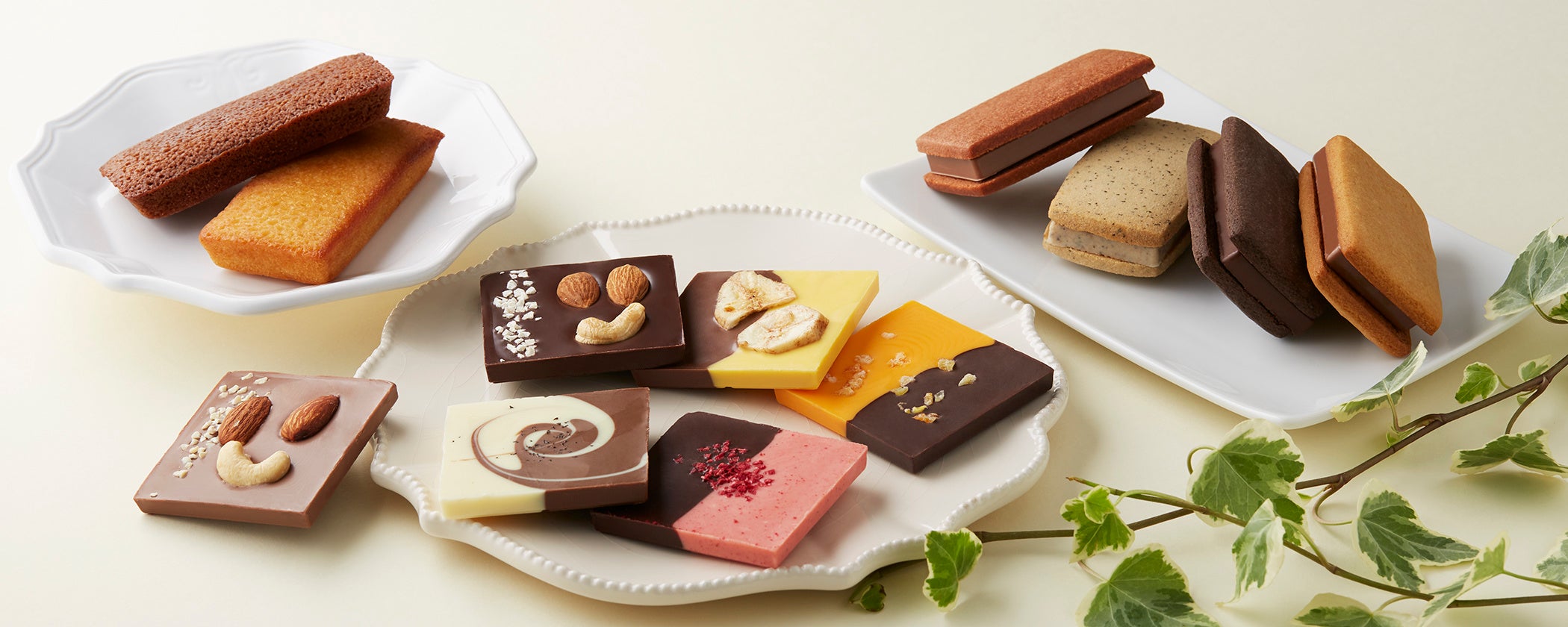 様々なギフトシーンに対応できるショコラや焼菓子、ご自身でも楽しんでいただける季節のスイーツなど、幅広いラインナップをご用意しております。