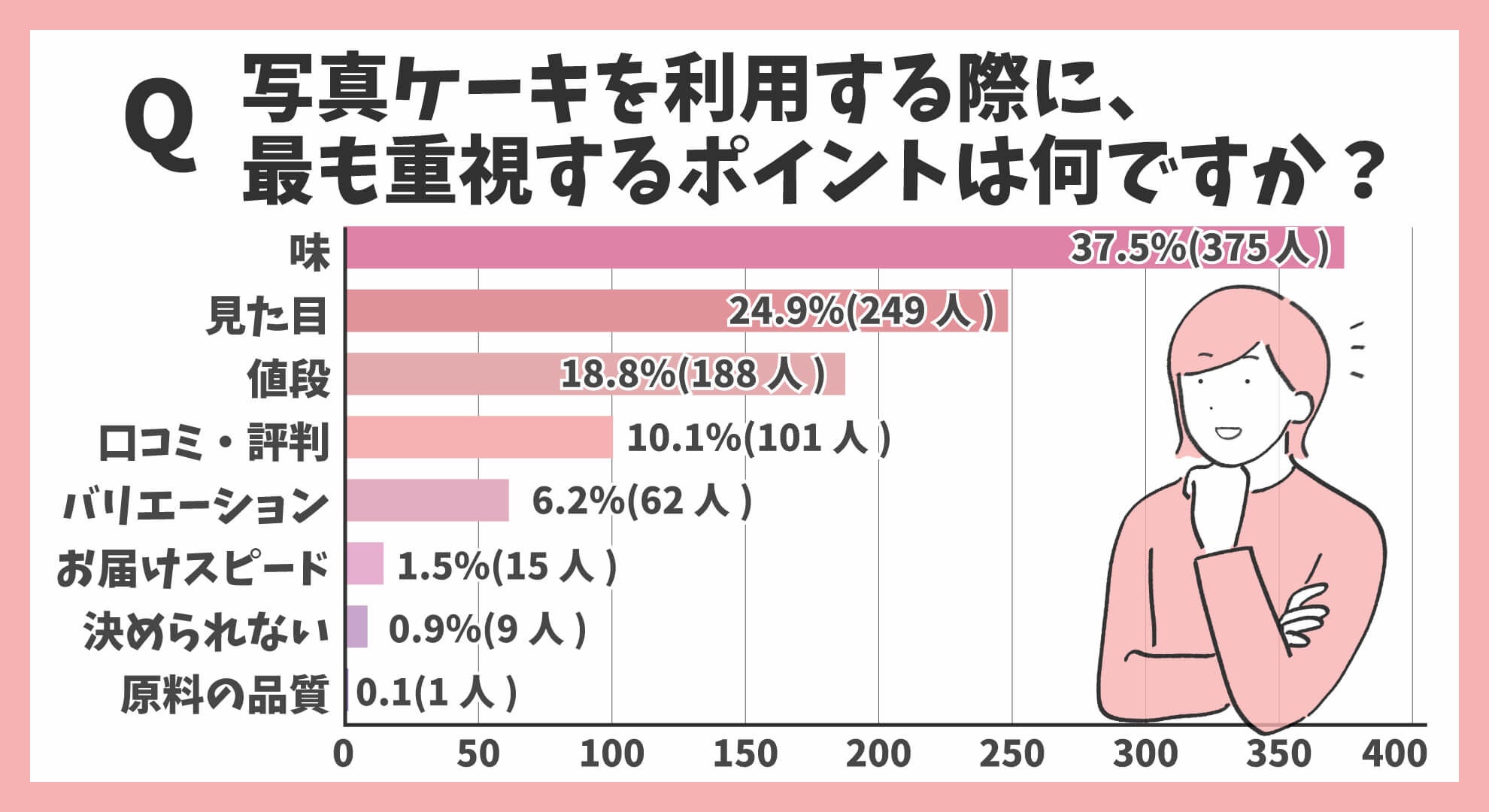■写真ケーキ選びで重視するポイントは?37.5%(375人)が「味」と回答