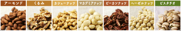 世界各国から仕入れた厳選した7種類のナッツ(アーモンド・くるみ・カシューナッツ・マカデミアナッツ・ピーカンナッツ・ヘーゼルナッツ・ピスタチオ)をミックスしています。