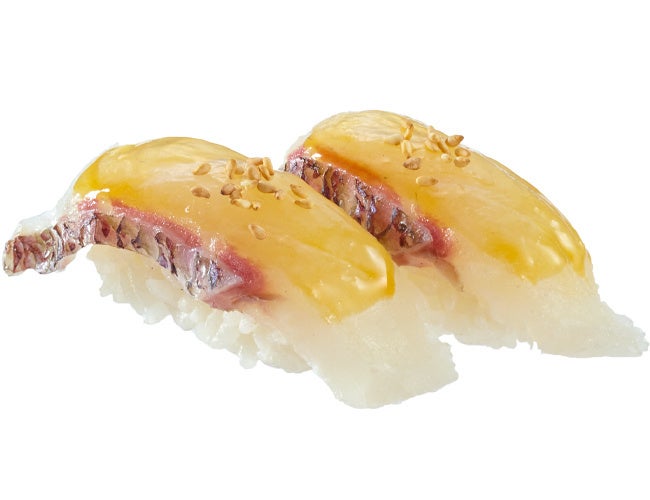 「回転寿司みさき」では、FOOD & LIFE COMPANIESの持つ食材調達力にて集める“厳選食材”と、「回転寿司みさき」に所属する200名を超える職人たちのもつ“技”を掛け合わせたこだわりのメニューをご提供しています。3月に期間限定でご用意する商品の目玉は「桜たい」。桜が咲く季節に水揚げされた真たいは「桜たい」と呼ばれており、産卵前の栄養を蓄えた真たいで、「回転寿司みさき」では店内で3枚に卸し、皮湯引きを行うことで身の旨みだけでなく皮の旨みもお楽しみいただけます。今回、「桜たい」を存分にご堪能をいただけるように3種の商品をご用意いたしました。1つめの「桜たい(真たい)」は春を感じる桜の塩漬けを添えて、「桜たい」本来の味を感じていただける一品に。2つめの「桜たいのほっかぶり」は、薄く切った大根を甘酢漬けにしたものを「桜たい」の上に重ねました。これは“ほっかぶり”といわれ、手ぬぐいを頭にかぶせ、あごのあたりで結んでいるような状態を寿司で再現した新商品です。3つめの「桜たいの黄身醤油」は、黄身醤油を添えることで愛媛県の郷土料理の鯛めしを再現しました。