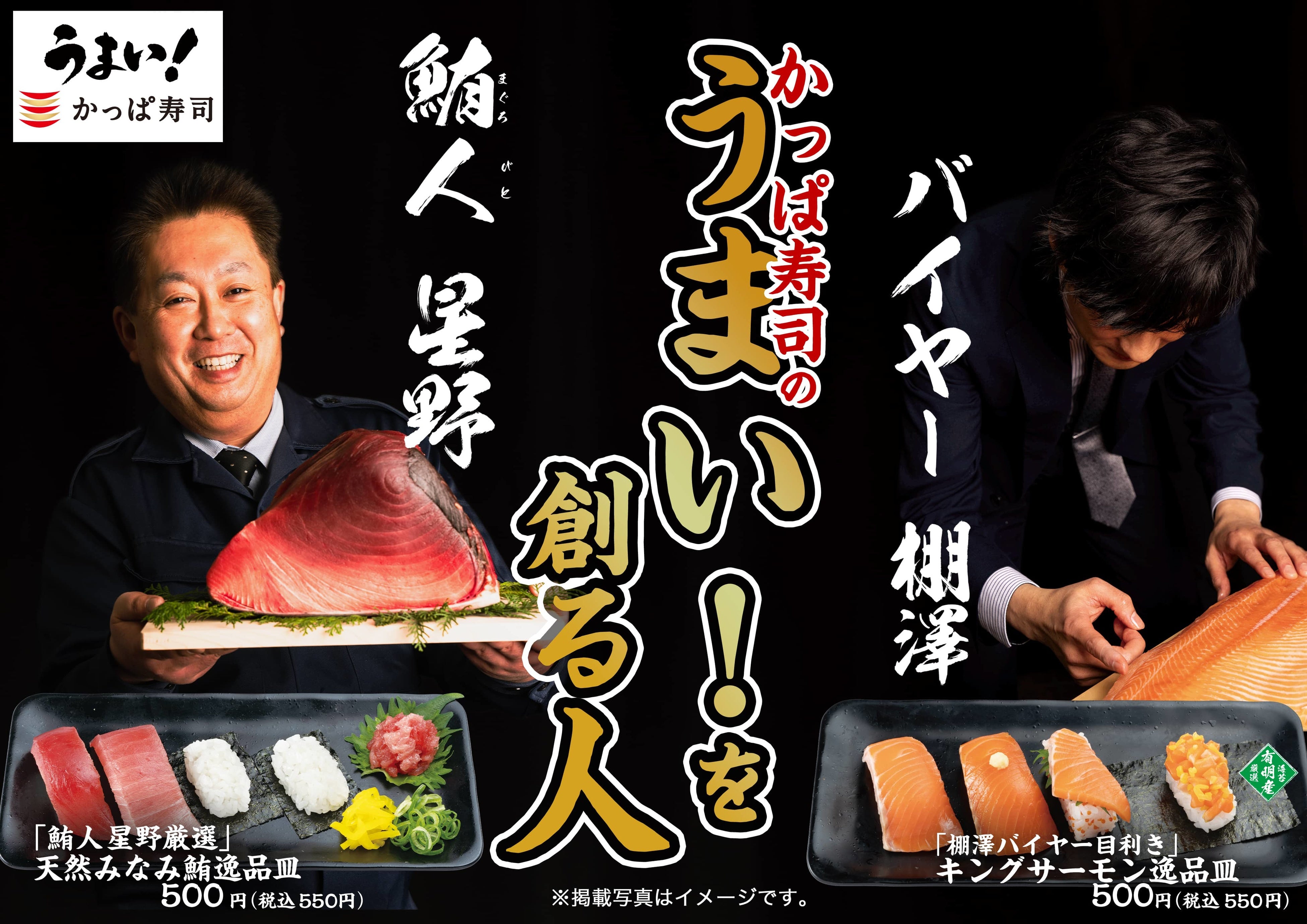 春のかっぱ寿司はお楽しみいただきたい商品が盛り沢山!中でも絶対に外せないのは「天然みなみ鮪」と「キングサーモン」。かっぱ寿司で長年目利きをしてきた2人のバイヤーが今だから食べていただきたい、厳選して仕入れた自信の商品をご提供します。