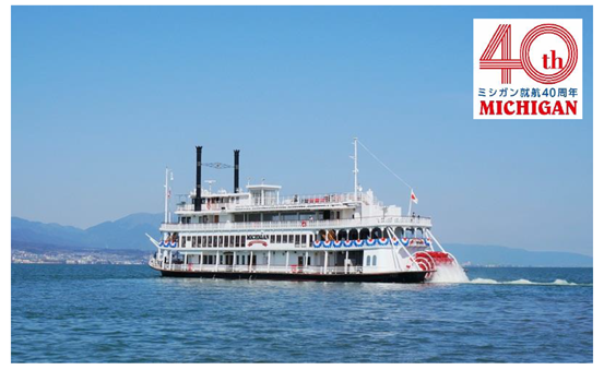 琵琶湖汽船株式会社(本社:滋賀県大津市浜大津、社長:川添 智史)が運航する外輪船ミシガンは、本年4月29日(金・祝)で就航40周年を迎えます。40年の長きにわたり、びわ湖やお客様、地域の皆さまに、沢山のご支援をいただいてきたことに感謝申し上げます。