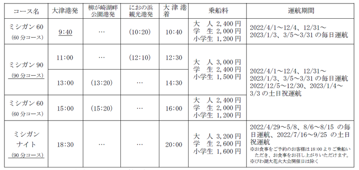 1.ミシガンクルーズ2022年度運航ダイヤ・料金