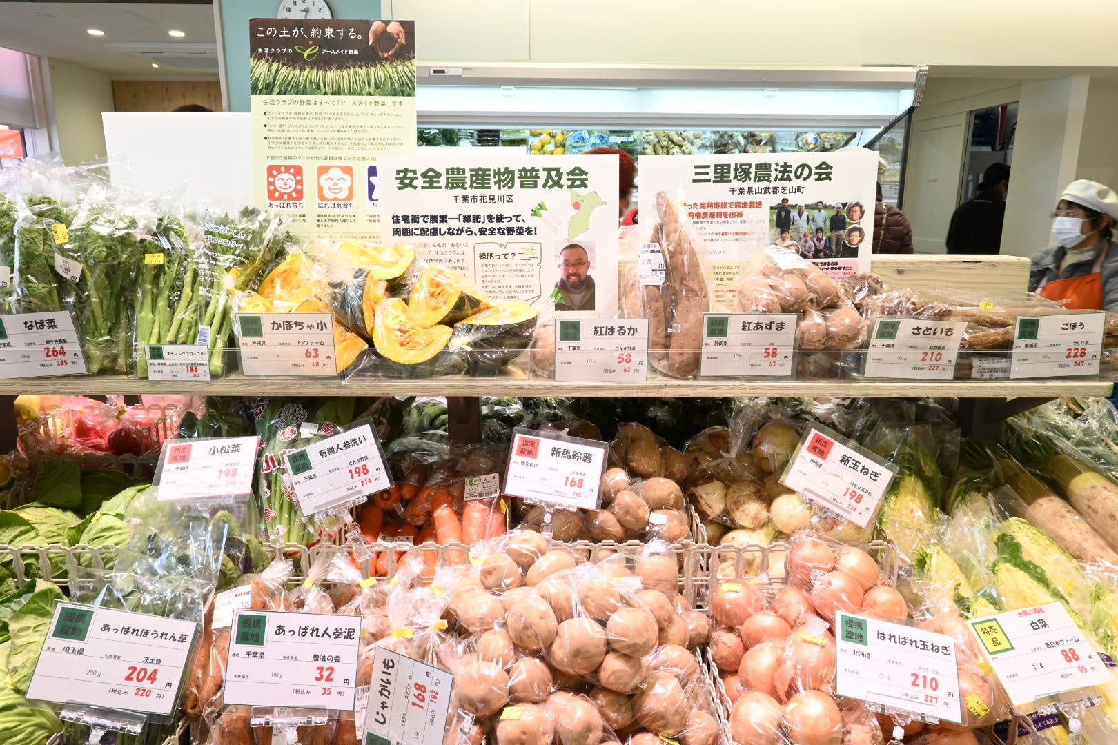 【青果】減農薬で新鮮な野菜を扱います。生産者の顔が見えるよう産地や生産者名を表記しています。