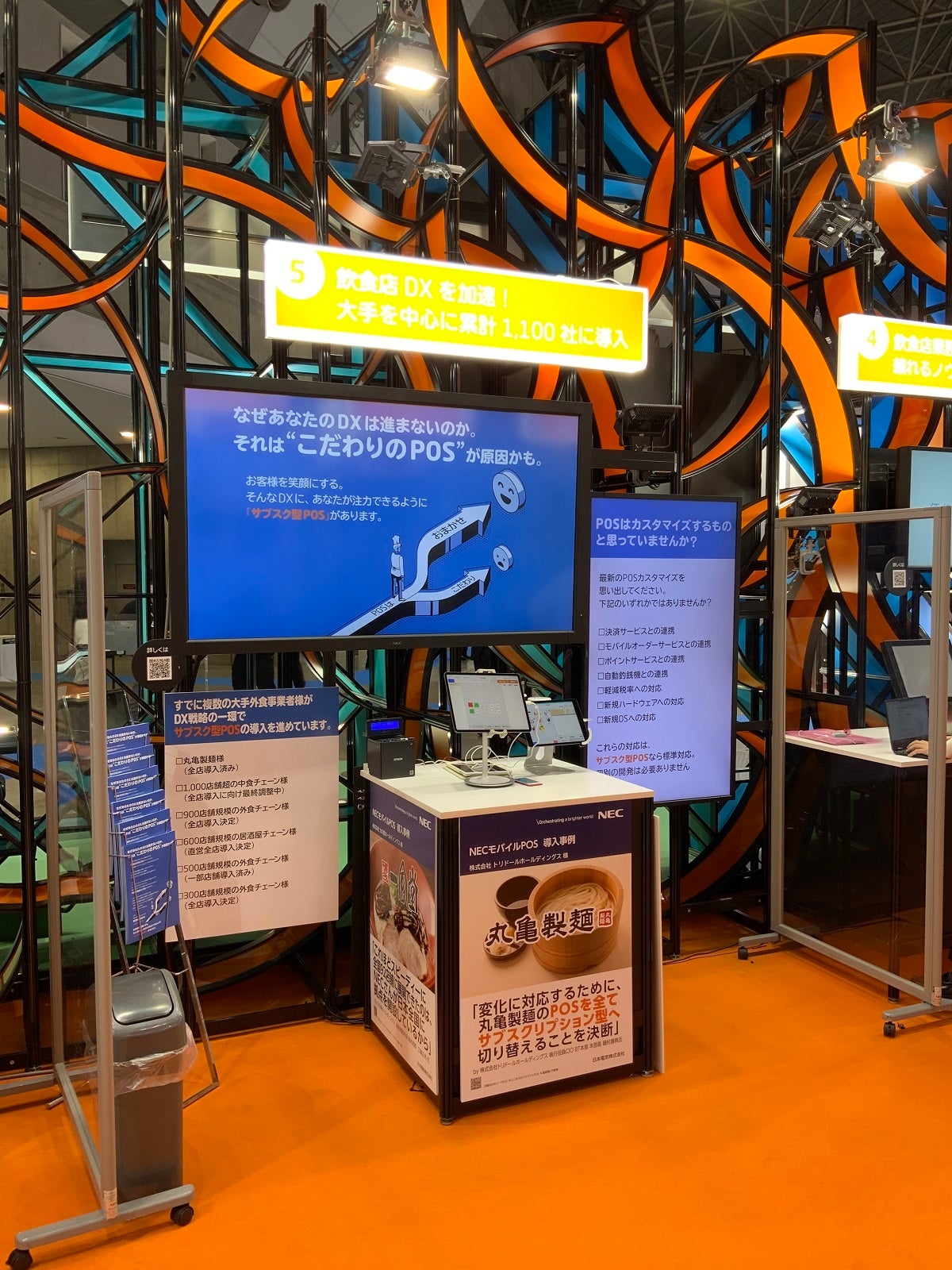 飲食事業者における店舗DXの要となる「モバイルPOS」の紹介を中心とした展示ブースには、多くの方に来訪いただきました。展示ブースでは、実際のデモによる利用体験や、DX先進事業者様による「モバイルPOS」導入事例を紹介させていただきました。