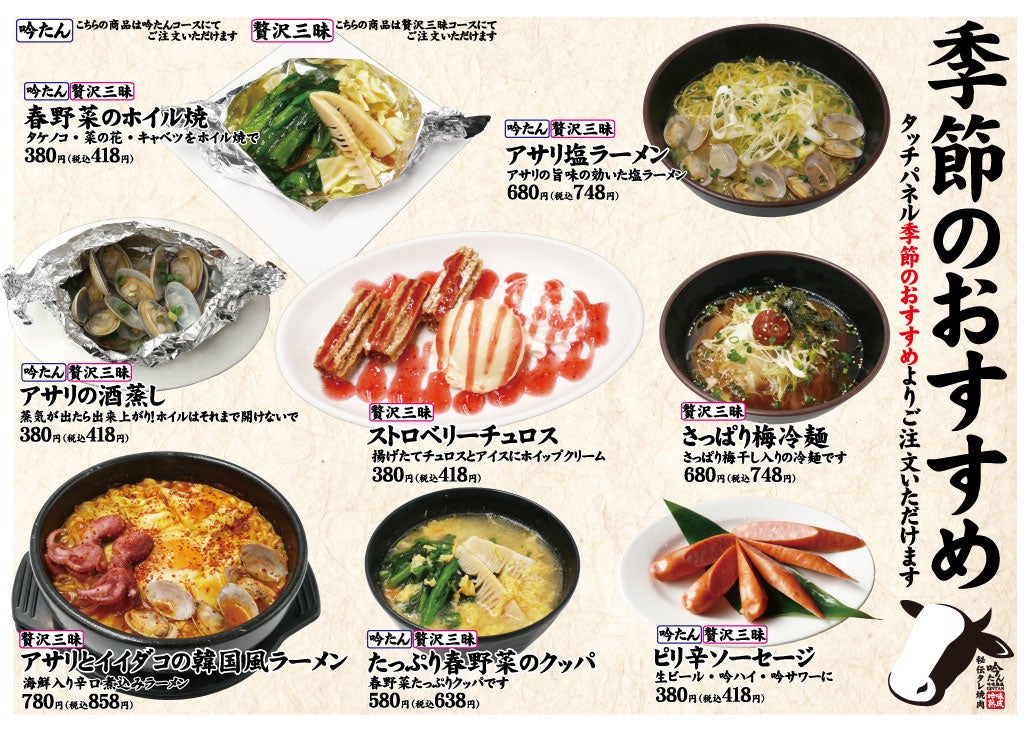 秘伝タレ焼肉 吟味熟成 吟たん、春のおすすめメニュー発売