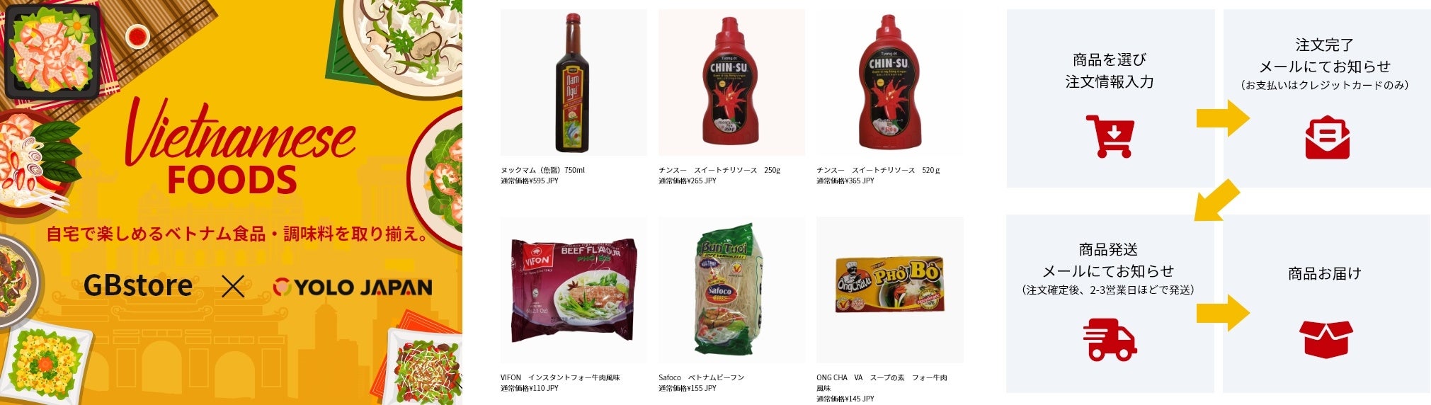 今回のサービスは現在日本に多く住むベトナム人向けにベトナムの食品や調味料を中心に提供していますが、今後は世界中の食材を取り扱う予定です。今後もYOLO JAPANは、インフラだけでなく外国人の食卓へのサポートも提供し、外国人が住みやすい日本づくりに貢献します。