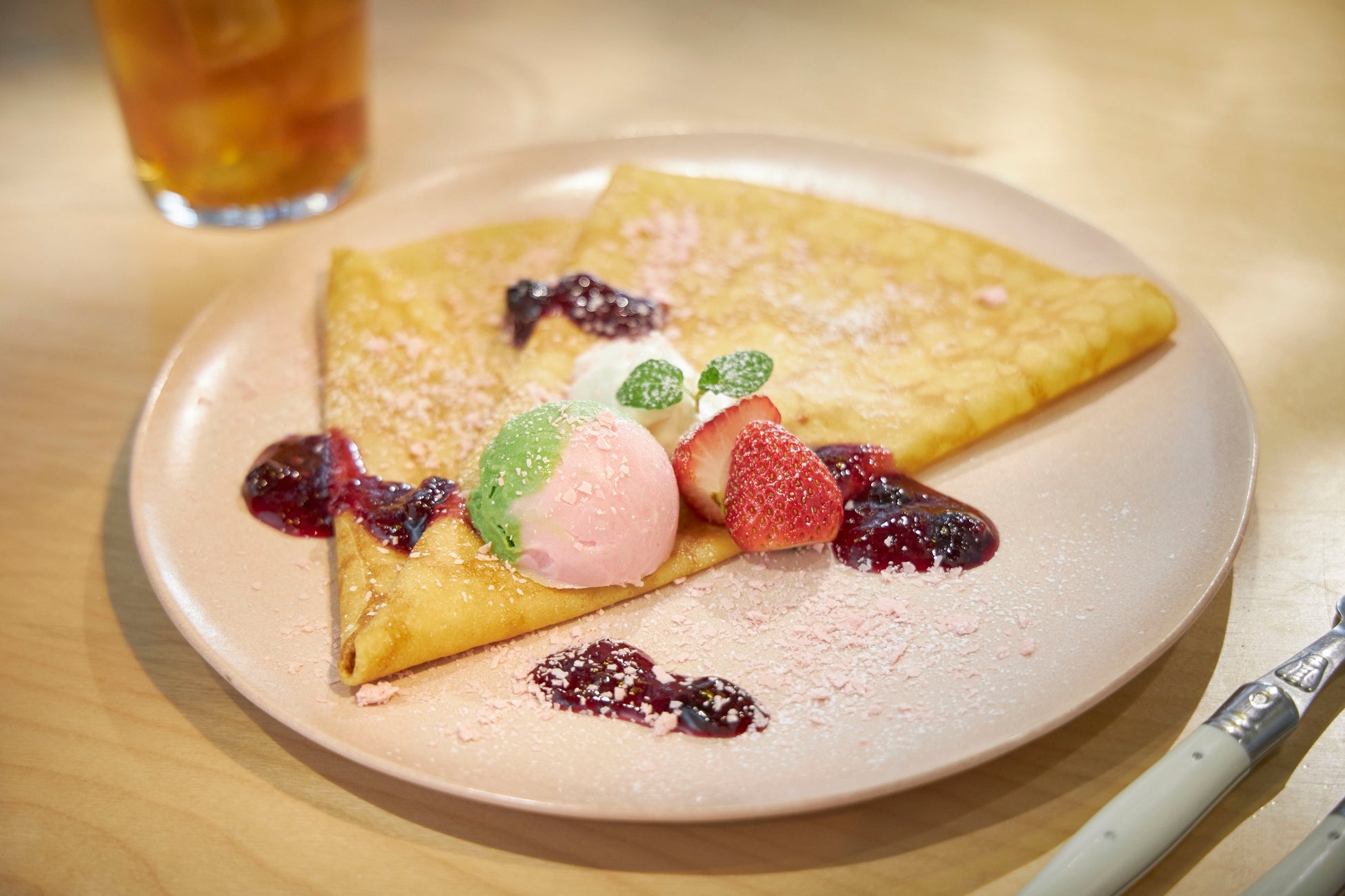 ・桜色の野菜ジェラートとミックスベリークレープ 1,100円(税込み)