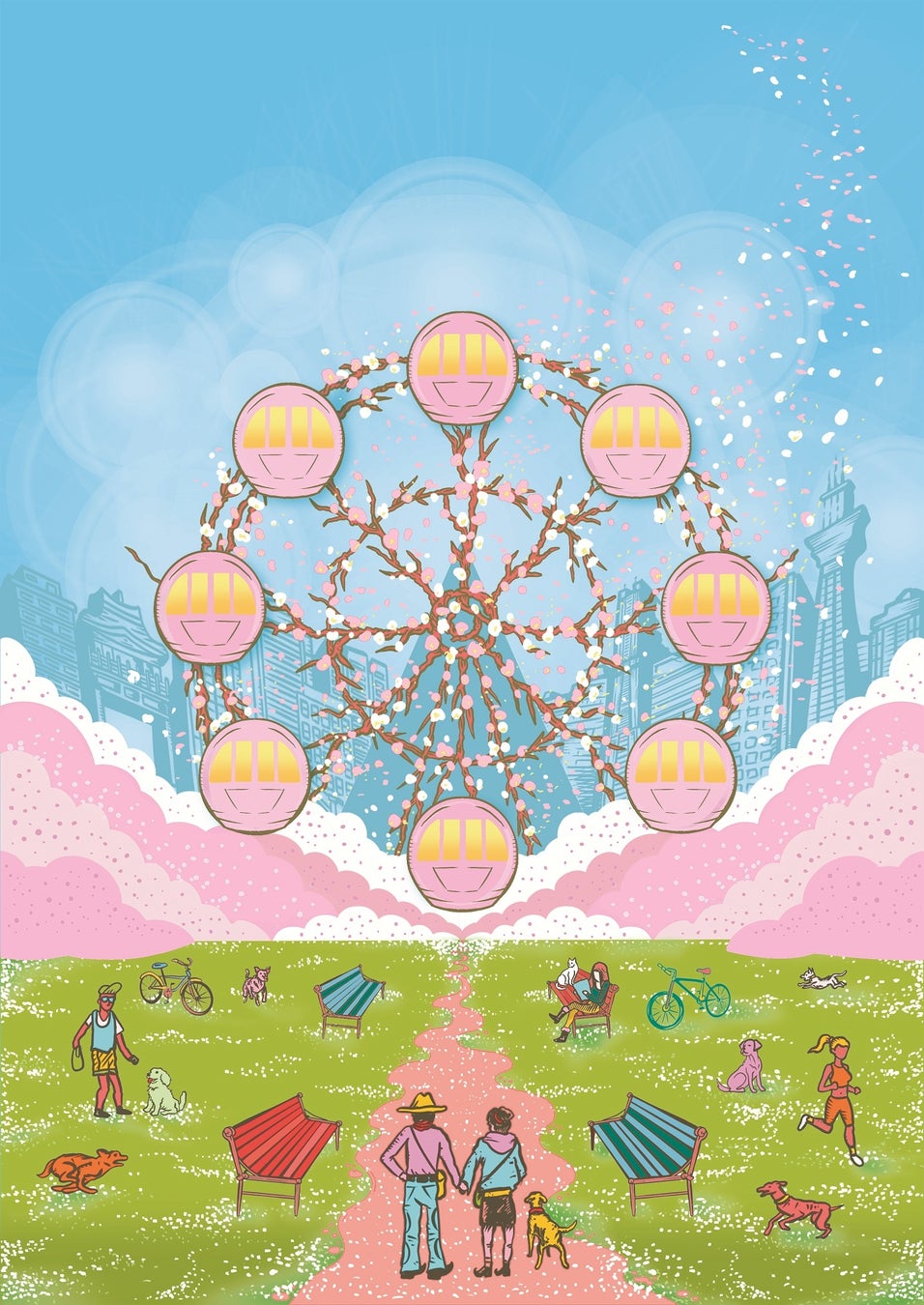Jay Holmes氏が描き下ろした横浜の桜をイメージしたビジュアルが登場。ビールの味わいからインスピレーションを得て創った作品は、爽やかで個性的。
