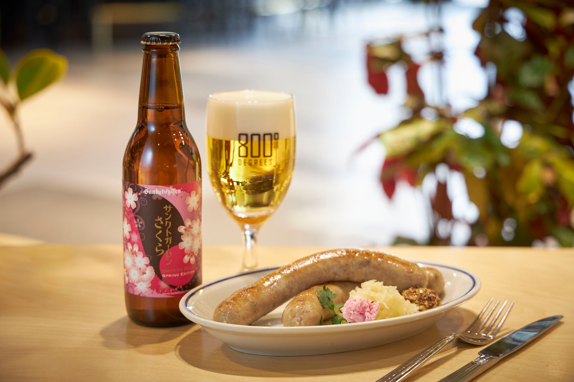 ・800°DEGREES CRAFT BREW STAND…自家製桜ソーセージ、サンクトガーレン「さくらビール」