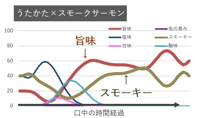 「うたかた」に含まれる冷やしておいしい酸の生臭さを消す効果により、魚臭さを感じることなく、程よくスモーキーで旨味が増強された味わいを楽しめます。