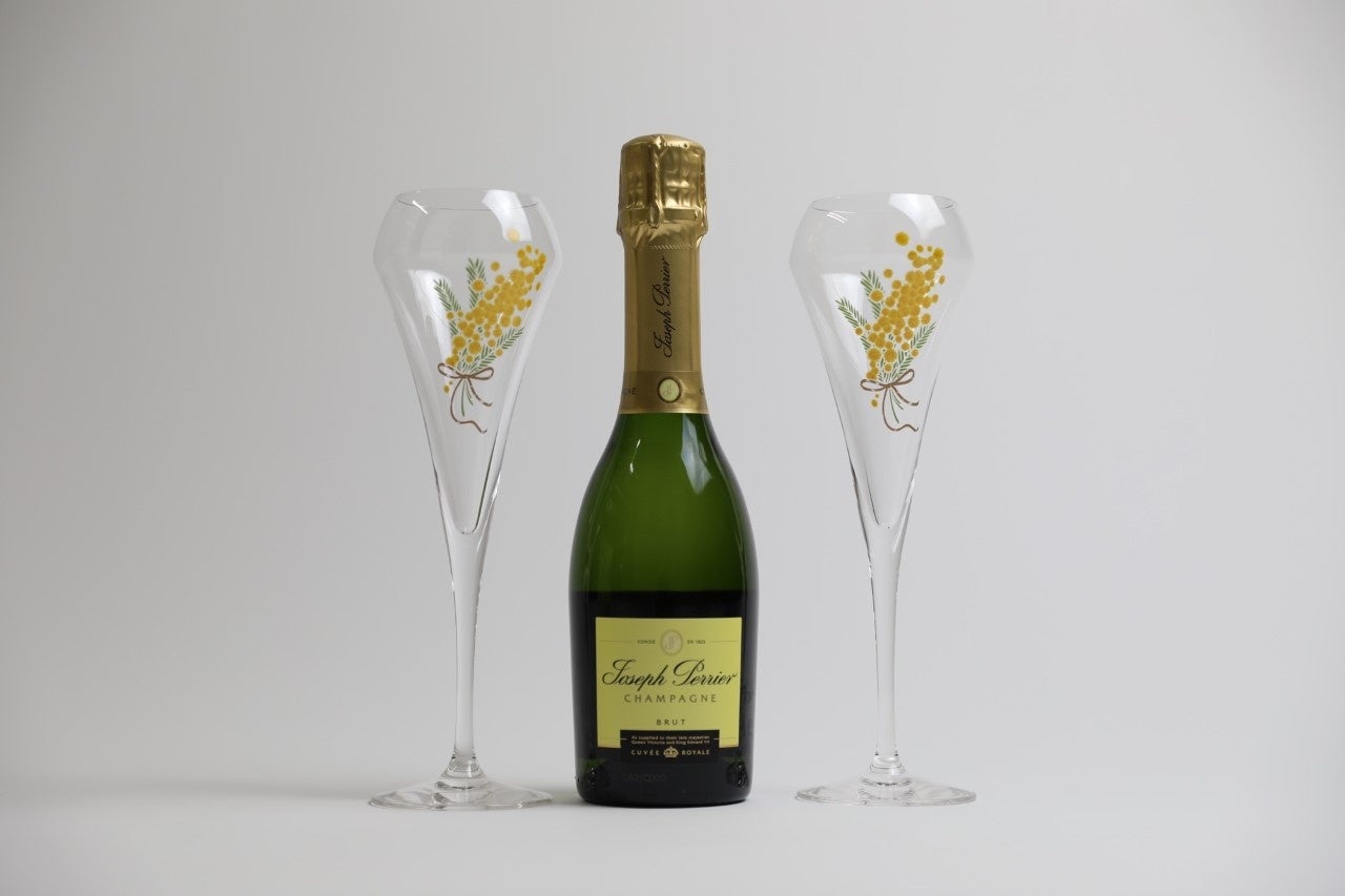 <ジョセフ ペリエ>ジョセフ ペリエ グラスセット&キュヴェ ロワイヤルブリュット ハーフ ミモザ特別ボックス入 8,800円 <24点限り>