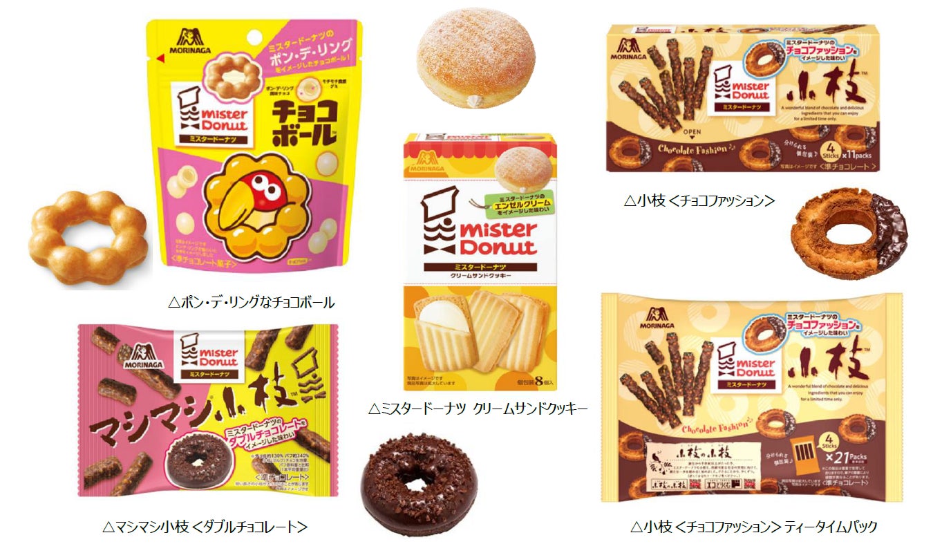それぞれのドーナツの味わいや食感を、チョコボールや小枝、クッキーの美味しさと組み合わせることで、驚きと楽しさのある美味しい商品が実現できました。『ポン・デ・リング』をイメージしたモチモチ食感のチョコボール「ポン・デ・リングなチョコボール」、『エンゼルクリーム』をイメージした優しい味わいのクッキー「ミスタードーナツ クリームサンドクッキー」、『チョコファッション』をイメージしたサクサクした食感の小枝「小枝<チョコファッション>」、『ダブルチョコレート』をイメージした濃厚なチョコ感のマシマシ小枝「マシマシ小枝<ダブルチョコレート>」です。風味や食感の再現性、美味しさをドーナツと食べ比べても楽しめる商品です。森永製菓とダスキンの共同開発で、ドーナツをチョコボールや小枝、クッキーで表現するという夢のコラボレーションを実現することで、菓子市場を盛り上げてまいります。