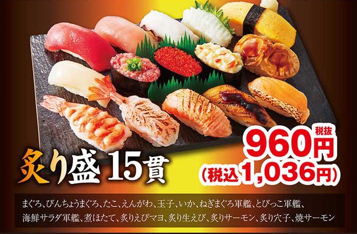 一人前15貫は、た~っぷり大満足!価格も960円(税込1,036円)と、とってもリーズナブル!!みんなでシェアするのもおすすめの商品です。