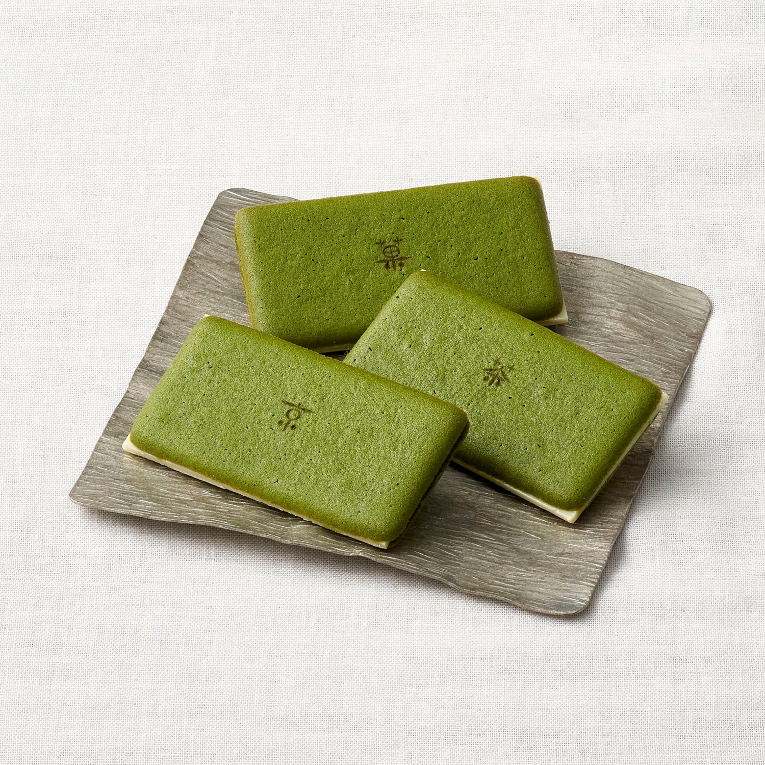 お濃茶ラングドシャにホワイトチョコを挟みました。