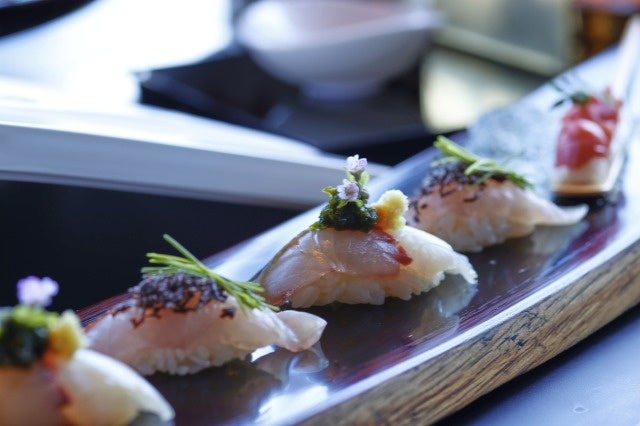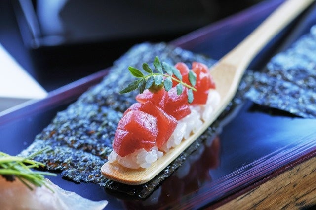 神奈川県の地魚2種と本マグロを使用した「かわり寿司」3種が、今シーズンより新たに加わりました。仕入れ状況によって都度ネタの種類は異なりますが、一品一品見目麗しく仕上げた職人技を感じるかわり寿司をご堪能いただけます。お寿司の海苔は、横須賀の走水地域で採取できる“走水のり”を使用。