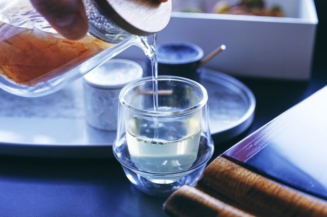 寝かしてうま味が増した「蔵囲い昆布」と「枯節」を贅沢に使用した「引き立て一番出汁」からスタート。出汁の旨みと塩気が甘味へと誘います。時間と共に味わいが変化する、昆布と鰹節の風味を、スイーツの合間にお愉しみください。