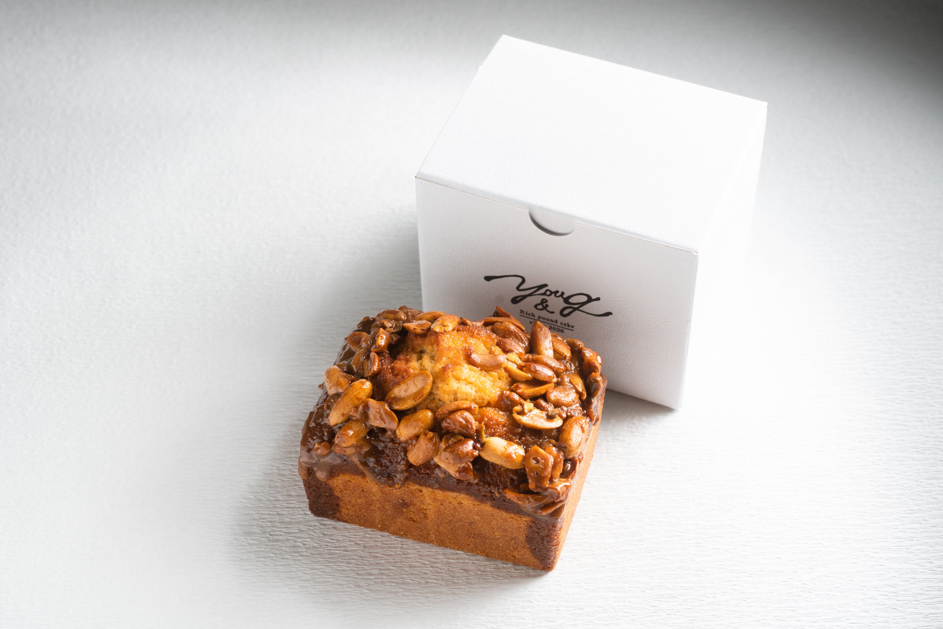 YOU&Gのしっとり、口どけのいいパウンドケーキに濃厚な落花生の味わいの生地と、噛むほどに甘さを感じる粒落花生をキャラメルコーティングしました。パウンドケーキ1本には殻付き落花生30個以上(※)も使用した、落花生好きも満足できる一品になりました。