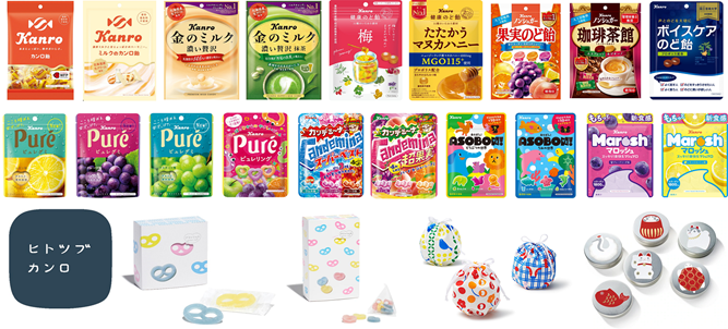 当社は創業から百余年、社名になっている「カンロ飴」を始め、ミルクフレーバーキャンディ市場売上No.1ブランド※「金のミルク」、菓子食品業界で初ののど飴となる「健康のど飴」、大人の女性に向けたグミ市場を創り上げた「ピュレグミ」など、常に消費者の皆様から愛され続ける商品を創り続けてまいりました。2012年からは直営店「ヒトツブカンロ」を運営し、「ヒトからヒトへ つながる ヒトツブ」をコンセプトにキャンディの魅力を発信しています。