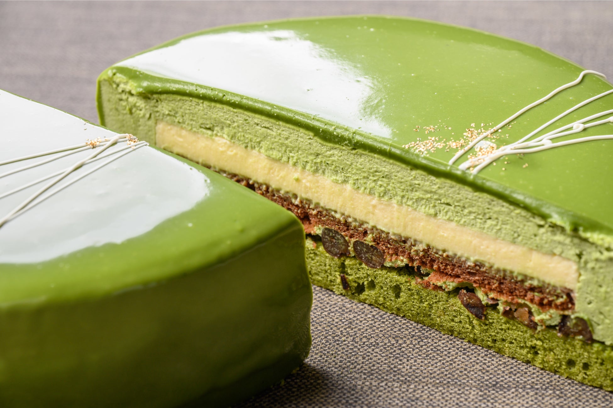伊勢茶とミルキーな練乳を層にしたムースに、食感も楽しめる大納言をあしらいました。濃厚で少しほろ苦い伊勢茶と、甘さのある練乳や大納言との絶妙な味のバランスに仕上げた逸品です。