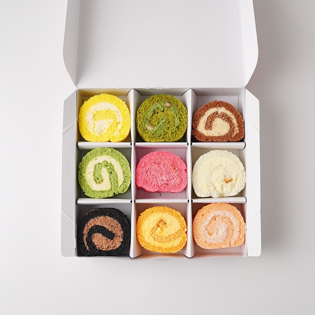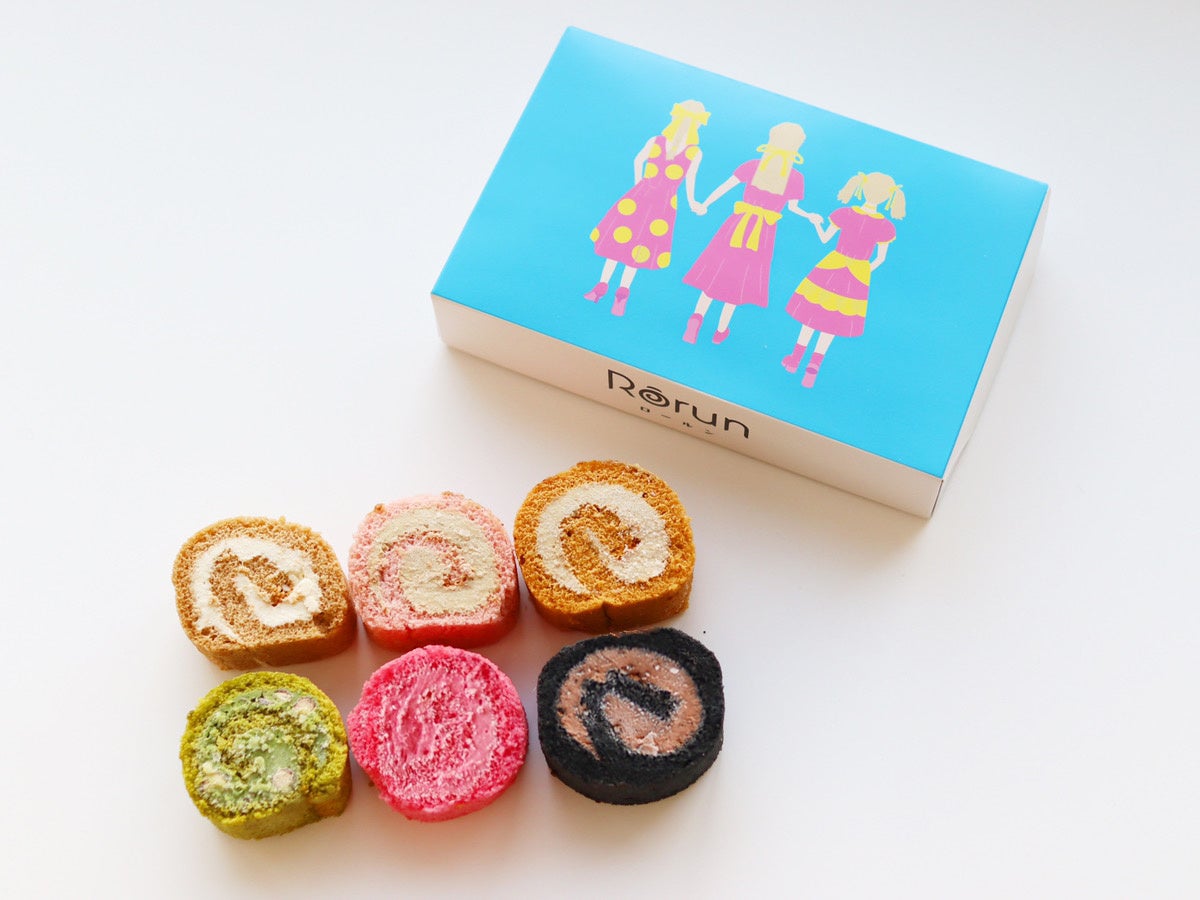 Rōrun(ロールン)の商品は9個入りと6個入りの2サイズ展開となります。パッケージにはレトロかわいい三姉妹が描かれており、贈り物にもぴったりです。6個入りの「ブルーの三姉妹」については内容を大幅リニューアル。ピンクの三姉妹と合わせてより多彩なフレーバーをお楽しみいただけるようになりました。