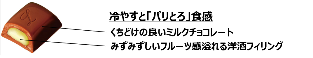長年積み重ねた洋酒チョコ技術に、『ひと工夫』を加え、季節にピッタリな味わいに仕上げました。
