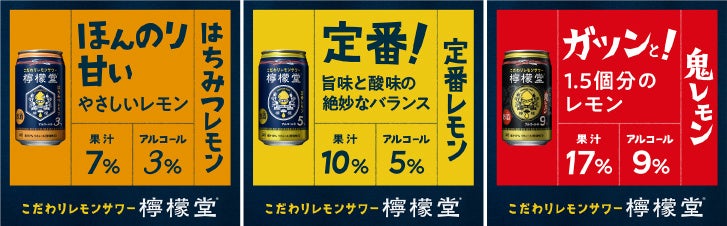 檸檬堂のこだわりレモンサワー3種(定番レモン350ml缶、はちみつレモン350ml缶、鬼レモン350ml缶)