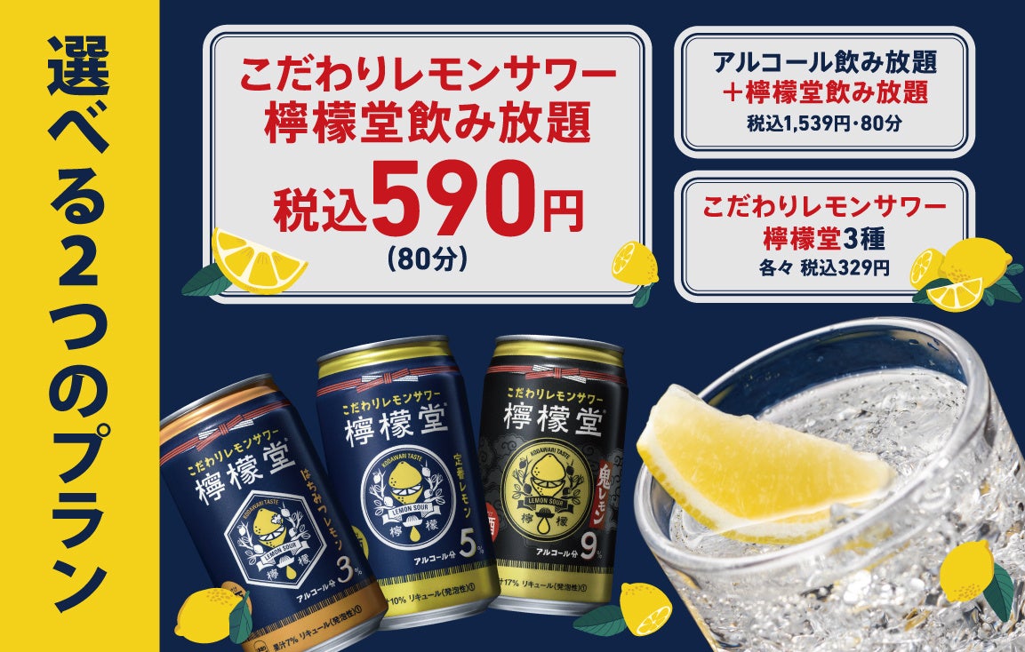 プラン①:こだわりレモンサワー檸檬堂80分飲み放題 590円(税込)