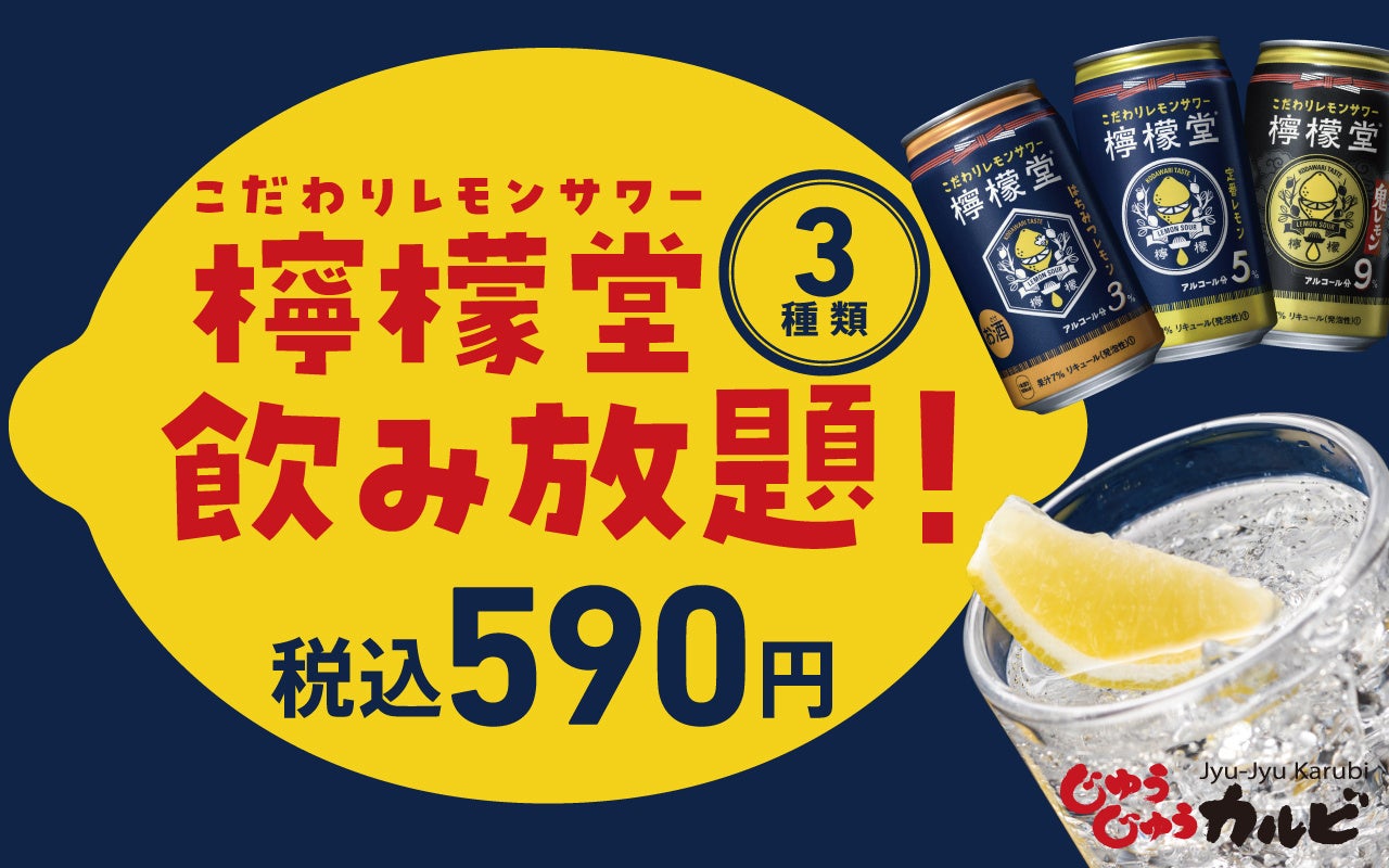 ■じゅうじゅうカルビで檸檬堂飲み放題をお得な価格で