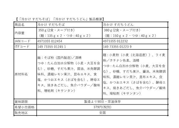 【「冷かけ すだちそば」「冷かけ すだちうどん」製品概要】