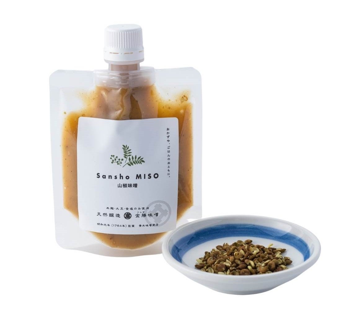山椒の風味を利かした山椒味噌。 柔らかな若芽ような緑色も目に優しく、それ に併せてパッケージも口つきの袋になりまし た。 木の芽和えや田楽、風呂吹き大根もいいです し、出汁で延ばして素麺のタレなんかにもオ ススメです。