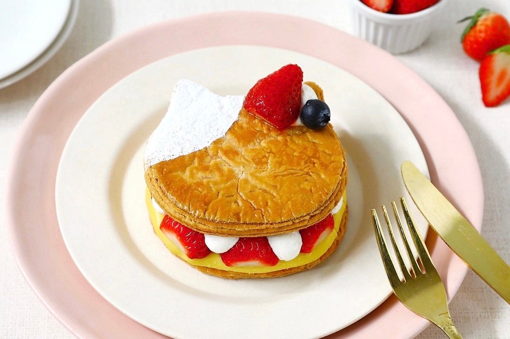 そんなニャーニャーの日に合わせて、ねこをモチーフにしたスイーツが期間限定で登場。3月の商品は、昨年販売し、大好評だった「ニャンともおいしいミルフィーユ 苺」です。