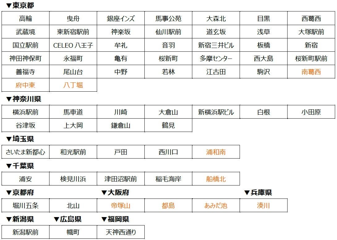 - ロイヤルホスト クラフトビール販売店舗(計67店舗) ※3/7追加店舗はオレンジ色
