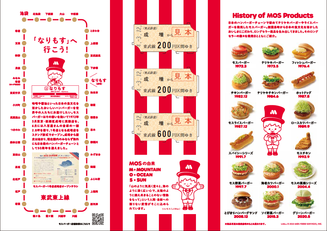 東武鉄道では、成増が発祥の地である地元企業の「モスバーガー」が今年で創業50周年を迎えることをお祝いし、モスバーガーと様々なコラボレーションを行います。
