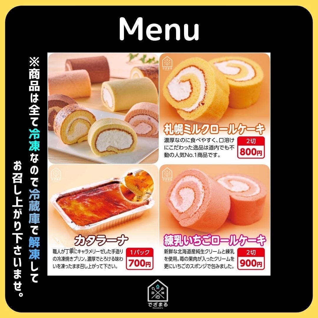 北海道産原料100%にこだわり冷凍自動販売機に特化したブランドです。小麦粉、卵、生クリーム、職人、工場に至るまでオール北海道産です。難しかった流通も様々な工夫で解消し、皆様にお届けする事が可能になりました。冷凍自動販売機で販売されている商品は、大体が餃子、ラーメンです。弊社では移動販売で築いたルートで北海道産原材料100%のケーキを仕入れることができ、流通において他では真似できないものとなっております。ケーキの自動販売機は、その難易度から北海道内に5台、静岡に1台あり、東京には弊社が初の参入となります。