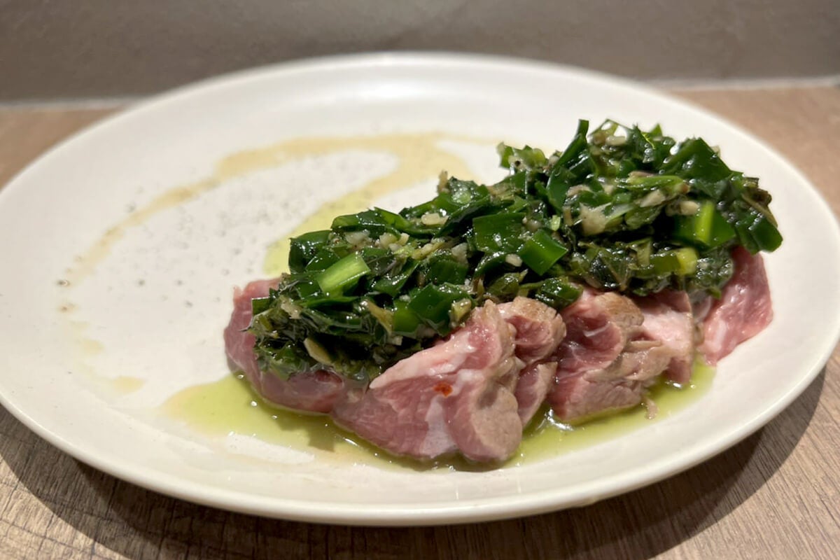 両面を軽く焼いたラム肉にミントとニラのソースをかけたさわやかで癖になる味になります。